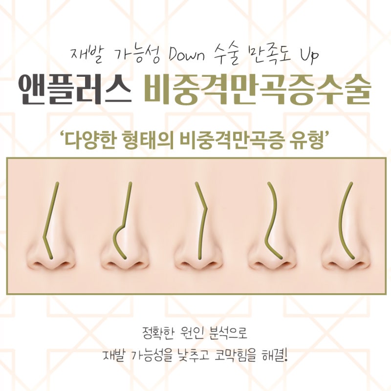 따라서 비중격만곡증 수술 리뷰를 보면 비중격만곡증이 단독으로 오는 경우도 있는데, 코 내부의 살로 된 조직인 하복갑개가 비대해지는 하복갑개비 후 코 지붕 역할을 하는 비판의 공간이 좁아져 협착된 상태를 비판협착증이라고 하는데 이런 증상이 복합적으로 오는 경우도 있습니다. 이 세 가지 모두가 코로 들어오는 공기의 흐름을 각기 다르게 방해해서 나타나기 때문에 반드시 정확한 코 상태를 확인한 후 그에 맞는 수술을 해야 코막힘 증상의 재발을 예방할 수 있습니다.또한 비중격만곡증의 경우 사람마다 코뼈의 굽힘 정도와 코막힘 정도가 다르고, 비중격이 휘어져 육안으로 구부러진 코 상태일 수도 있지만 반대로 육안으로는 곧게 보이는 코 모양을 하고 있더라도 내부에 비중격만곡증을 가지고 있을 수 있습니다. 이처럼 코 문제는 육안으로 정확한 확인이 어렵기 때문에 이러한 기능적인 부분을 배제하고 미묘하게 수술이 진행될 경우 기능 이상으로 인한 재수술을 초래할 수 있으므로 코막힘 증상이 없더라도 코 내부 기능까지 확인한 후 수술하는 것이 좋습니다.코막힘 증상에는 감기, 알레르기 비염, 구조적 비염 등 여러 원인으로 증상에 맞는 처방이 뒤따라야 합니다. 또한 구조적 비염의 경우는 코뼈의 구부러진 상태, 비밸브 협착 정도, 하체비만 정도를 확인해야 하므로 코막힘 증상만으로는 원인을 찾기 어렵기 때문에 반드시 장비를 통한 증상 파악 후 개개인에게 맞는 수술 방법으로 진행해야 만족할 수 있는 비중만점증 수술 리뷰가 됩니다.오지코병원 앰플라스에서는 만족스러운 비중격만곡증 수술 리뷰가 가능하도록 수술 전 각종 알레르기 검사 및 3D-CT 촬영과 내부 내시경 촬영을 통해 추출된 데이터를 통해 코막힘의 원인을 정확하게 파악한 후 개개인에게 맞는 수술 방법과 재료에 의한 수술을 시행하고 있습니다.(위 이미지는 왕자병원의 앰플라스 실제 비중격만곡증 수술 후 후기 전후 사진입니다.)비중격만곡증 수술 리뷰를 보면 기능적인 코수술이 단독으로 진행되는 경우도 있지만 복합 증상은 미용비 성형이 동시에 이루어지는 것을 알 수 있습니다.비중격만곡증 수술은 콧속을 절제하여 구부러진 비중격을 최소한 절제한 후 고친 후 코끝은 자가연골을 통해 교정하게 됩니다. 만약 복합적인 증상이 발생한 경우 레이저 또는 다른 수술법으로 추가될 수 있습니다.비중격만곡증 수술로 휘어진 비중격을 교정하기 위해서 최소한으로 억제된 비중격연골을 통해서 코끝을 교정하는 미용비성형이 가능하기 때문에 비중격만곡증 수술 후기를 확인해 보면 좀 더 만족도 높은 기능비수술이라고 할 수 있습니다.비중격만곡증 교정 후 추가적으로 미용코 성형을 할 경우 보통 코끝은 자가연골, 코끝은 실리콘이 사용되고 있으며 코끝에 사용되는 자가연골 재료로는 귀연골, 비중격연골, 자기늑대가 있으며 수술재료도 사전검사를 통해 개개인에게 맞는 재료로 사용되고 있습니다.또한 콧날에 사용되는 실리콘의 경우 기존의 높은 콧날에만 중점을 두기보다는 인위적인 느낌을 최소화하고 상품화된 실리콘을 그대로 사용하지 않으며 개개인의 전반적인 이미지와 콧날의 폭, 길이, 넓이, 높이 등을 고려하여 직접 다듬은 후 삽입하여 미용 코 성형이 이루어지고 있습니다.오지코병원앤플러스에서는 만족스러운 비중격만곡증 수술후기를 목표로 윤형철 대표원장이 1:1 전담하여 비중격만곡증 수술상담부터 수술계획 수립, 시행, 치료, 경과진료까지 모든 과정을 직접 진행하고 있습니다.사후관리 또한 앤플러스 멤버십 카드를 발급받아 수술 후 1년간 보장되는 애프터서비스 제도와 만일 발생할 수 있는 수술 후 통증, 염증, 형태에 따른 불만 등 모든 상황에 대비하여 수술책임보증제를 시행하고 있으므로 앤플러스 멤버십 카드를 소지한 분이라면 사후관리 혜택을 받으실 수 있습니다.이상으로 비중격만곡증 수술 후기에 대한 내용을 전해 드렸는데 비염으로 인한 코막힘으로 인해 일상생활에 불편함을 느끼고 코 성형을 고려하고 계신 분들께 이 글이 많은 도움이 되었으면 좋겠습니다. 감사합니다。앤플러스의원 서울특별시 강남구 논현로 831 동아빌딩 6층앤플러스의원 서울특별시 강남구 논현로 831 동아빌딩 6층앤플러스의원 서울특별시 강남구 논현로 831 동아빌딩 6층