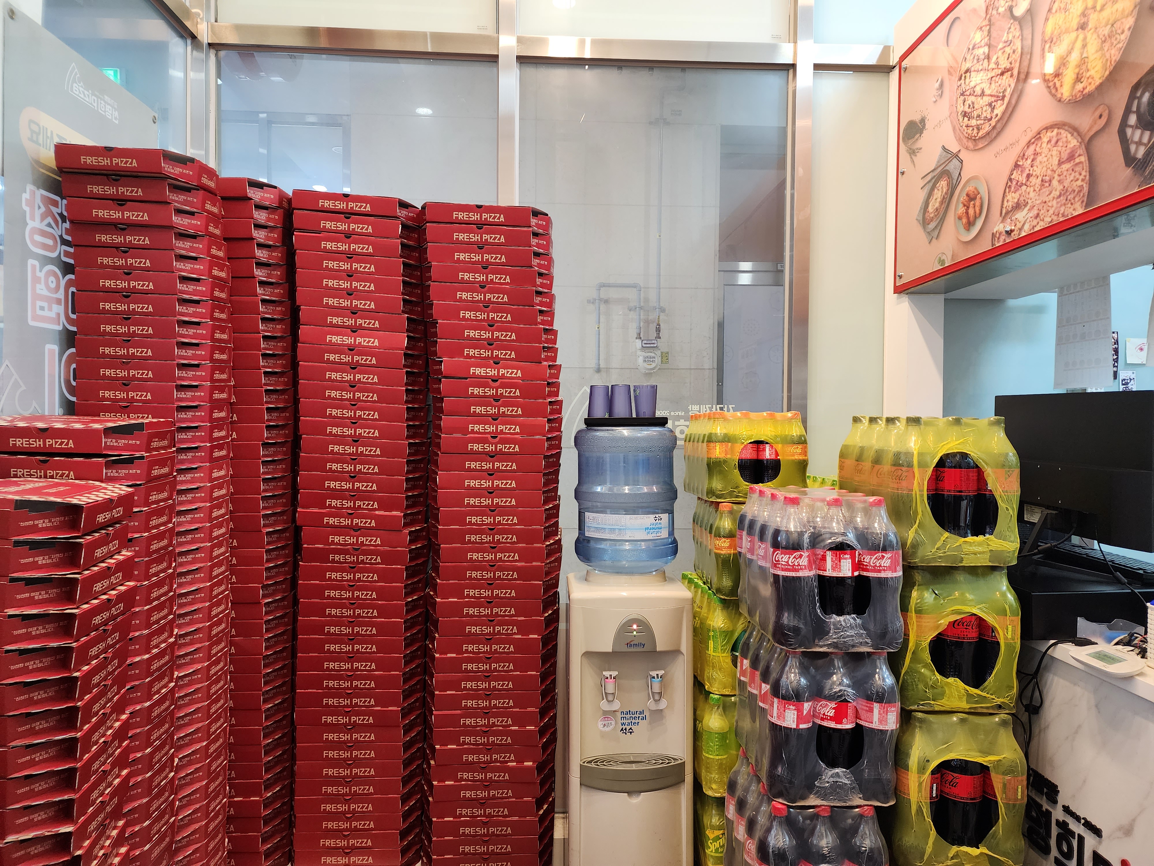 피자가게로 오픈한지 얼마 되지 않아 비품과 부속품이 최상의 상태를 유지하고 있습니다..