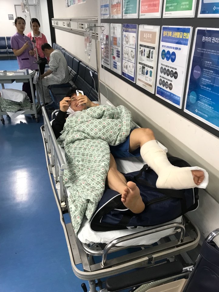 6월 13일 아킬레스건 파열.월드컵 시작과 동시에 이따 은퇴할 듯 밤 10시에 경기를 했고, 두 번째 경기는 쿵 하는 소리와 함께 자리에 앉았다. 파열. 응급실에 전화를 걸어 인제대학교 백병원에서 바로 수술이 가능하다는 말을 듣고 샤워를 하고 밤 12시에 병원에 갔다.