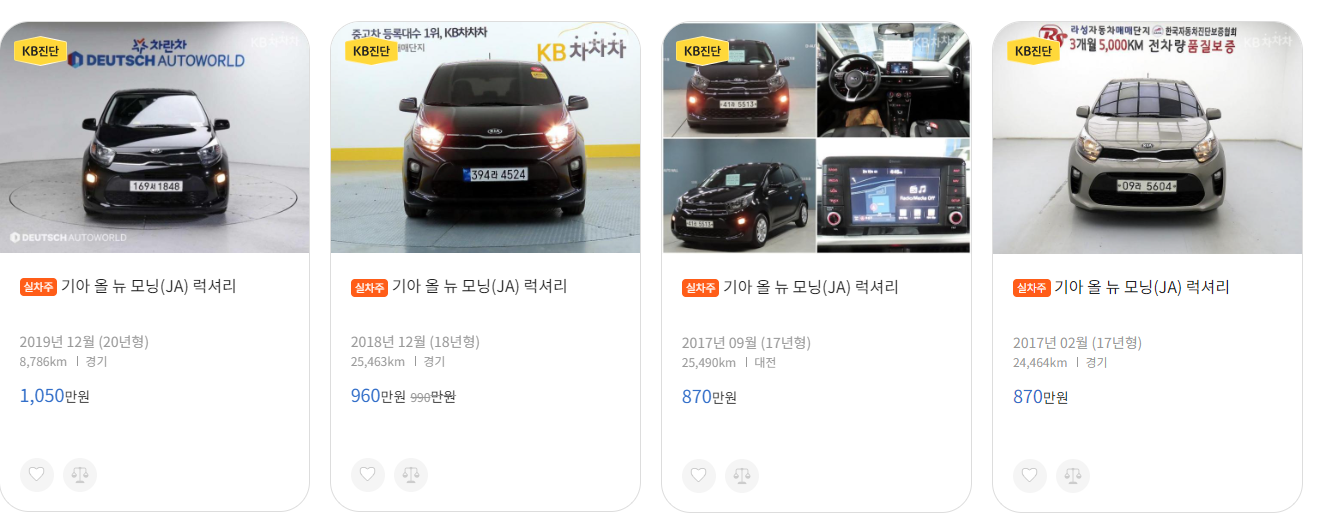 K카모닝은 상대적으로 판매량이 적었다. 120대, 가격대는 대부분 900만원대 후반이었다.