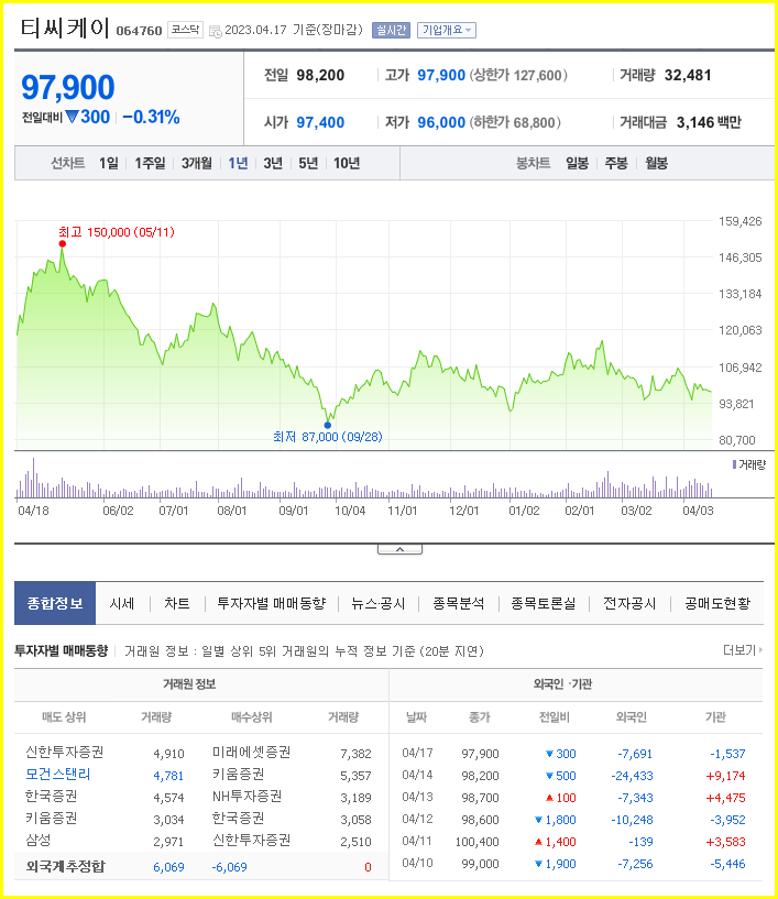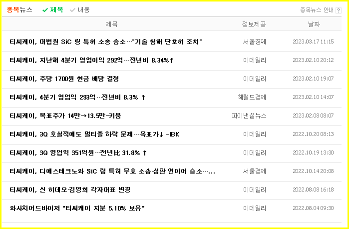 TCK의 주가 전망, 목표주가, 기업정보에 대해 기술한 기사입니다. 주식에 투자하기 전에 회사의 주가와 재무 정보에 대해 알아야 합니다. 티씨케이 주식의 주요현황과 투자정보를 확인하고 현 시세를 분석해 봅시다.