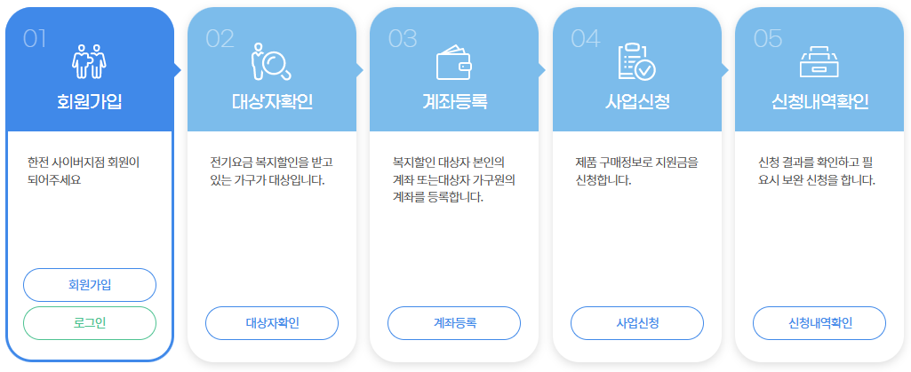 지원대상은 장애인, 소외계층, 기초생활수급자, 사회복지기관, 저소득자, 3자녀 이상 가구, 다자녀가구, 출산가구 등 한전 전기요금 사회할인가구를 대상으로 한다. 한전으로부터 전기를 구매하지 않는 지역난방망 고객은 지원 대상에서 제외됩니다.